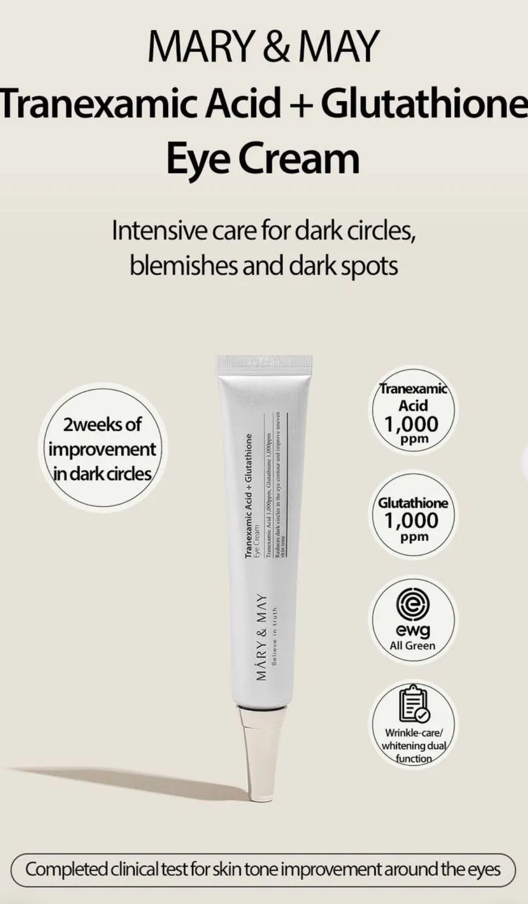Mary&May - Tranexamic Acid + Glutathione Eye Cream.