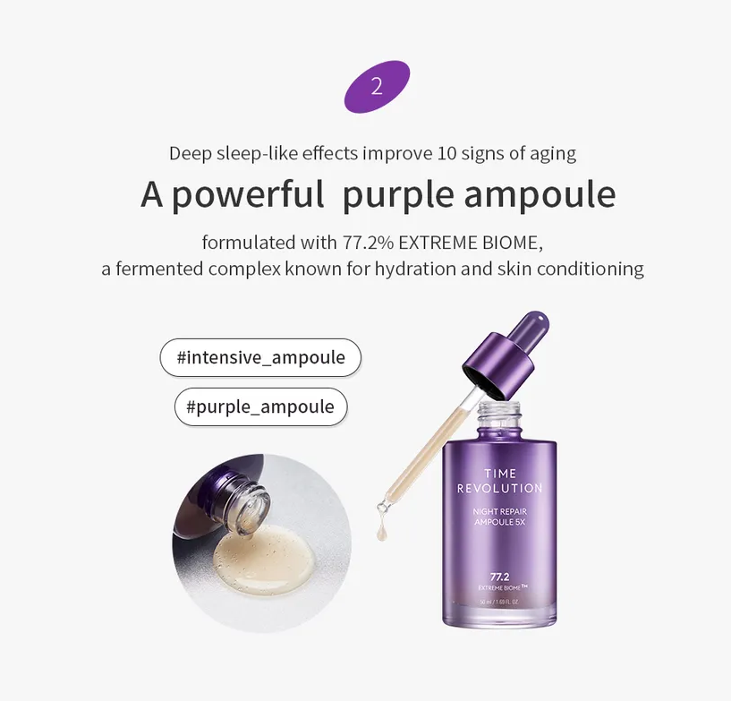 - Contains an ampoule enriched with 77.2% Extreme Biome™ to improve skin elasticity.