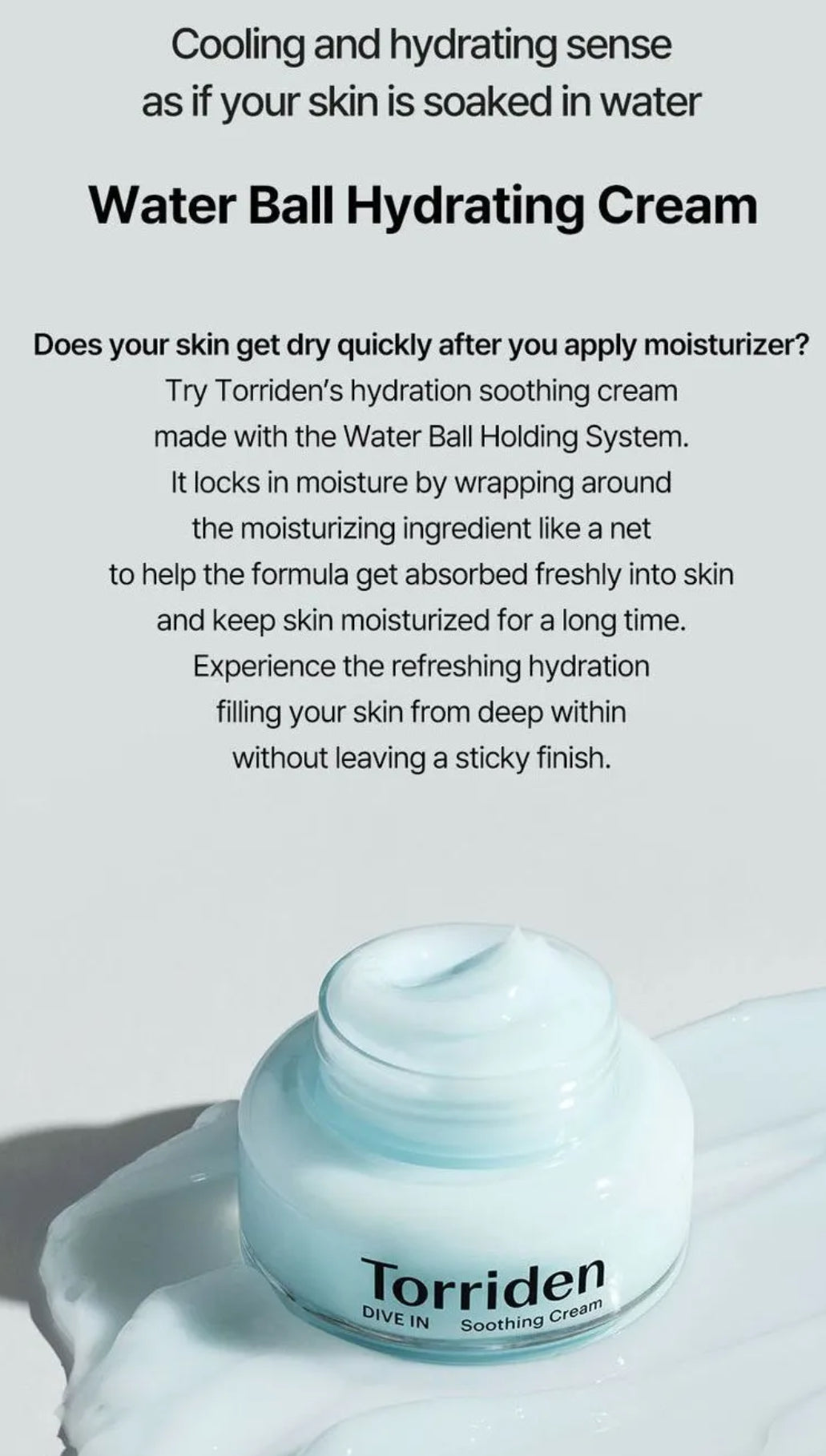 Torriden - DIVE-IN Low Molecular Hyaluronic Acid Soothing Cream.
